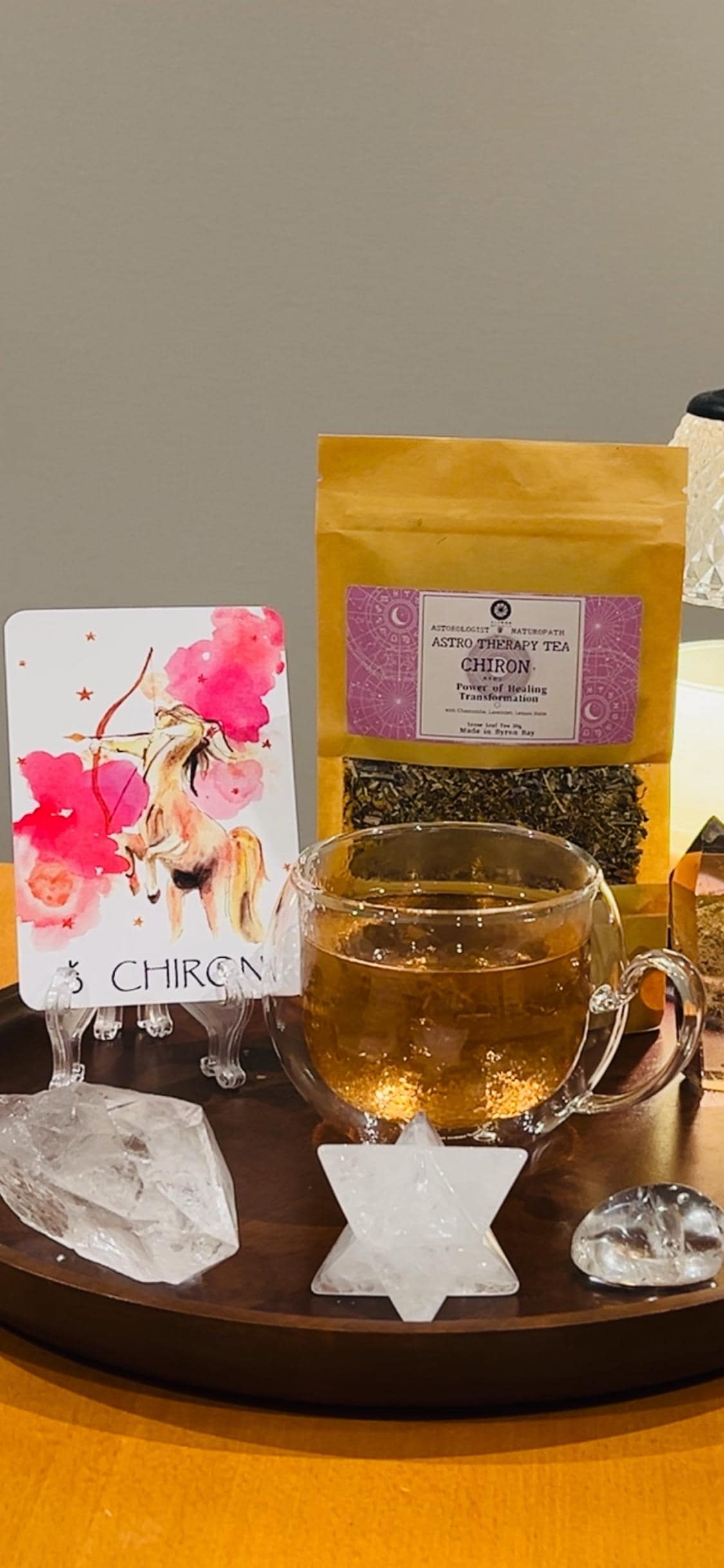 A soft and comforting organic herbal tea blend inspired by the reflective and transformative qualities often associated with Chiron.
