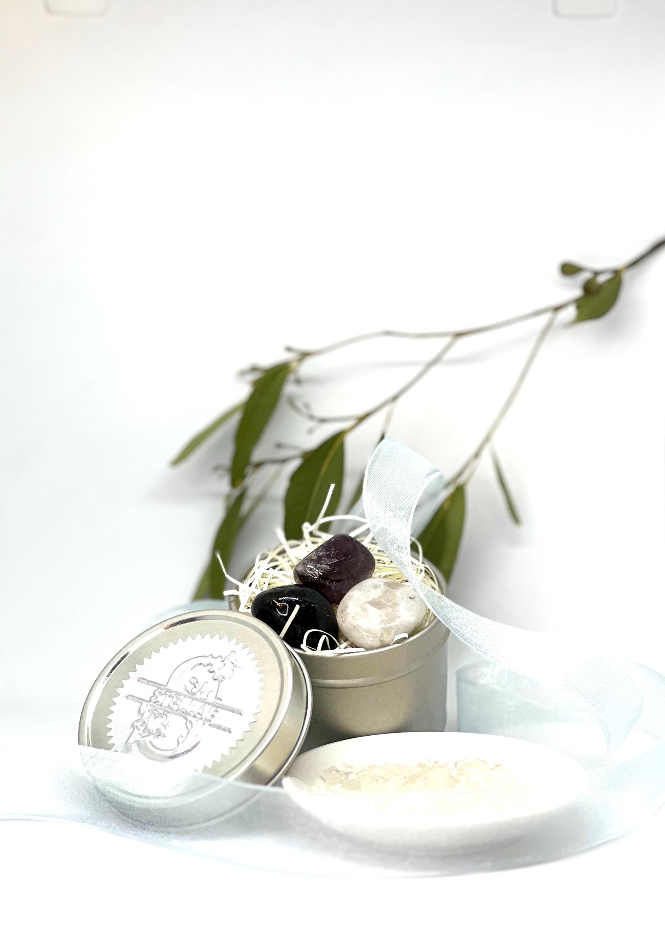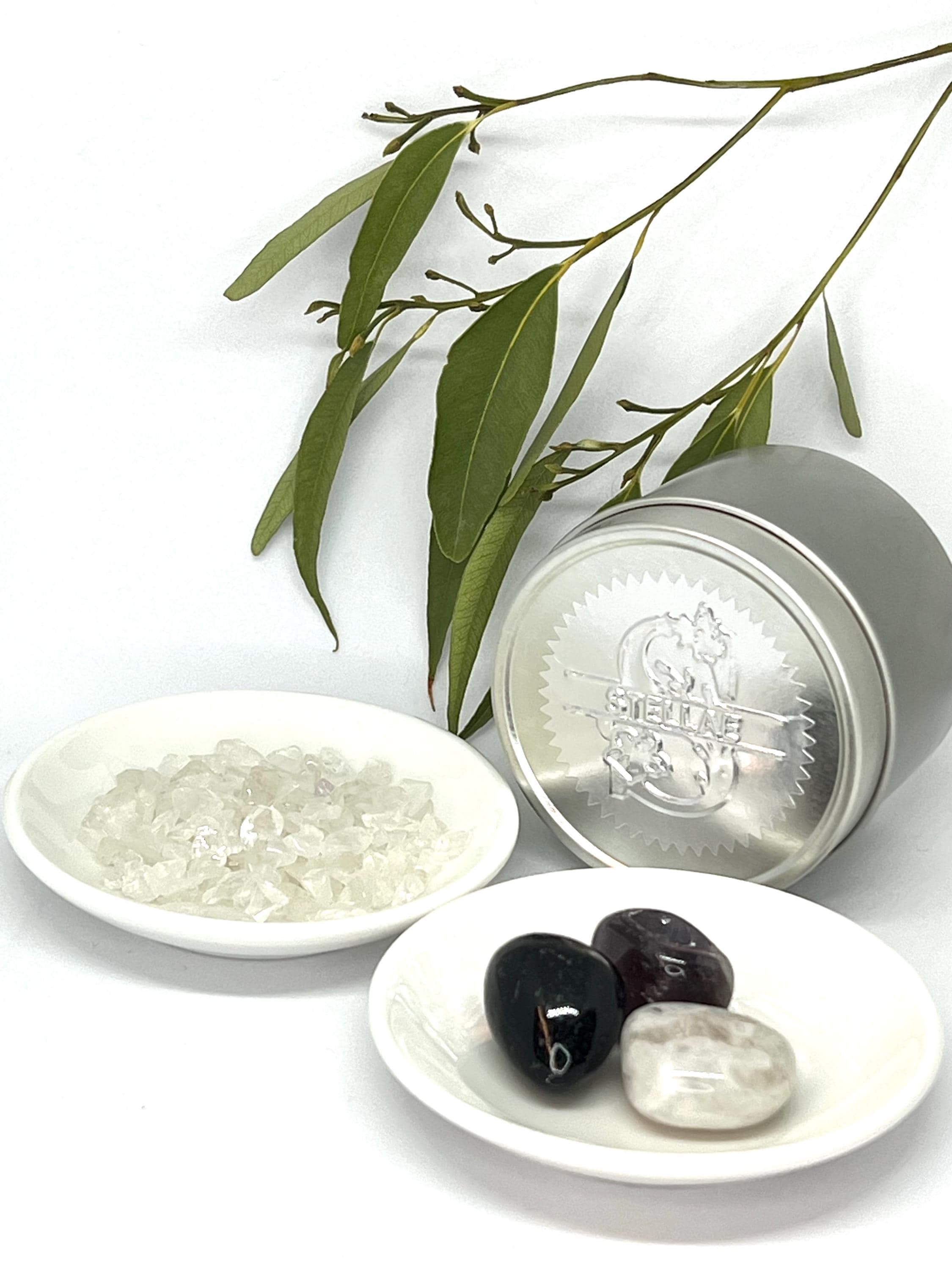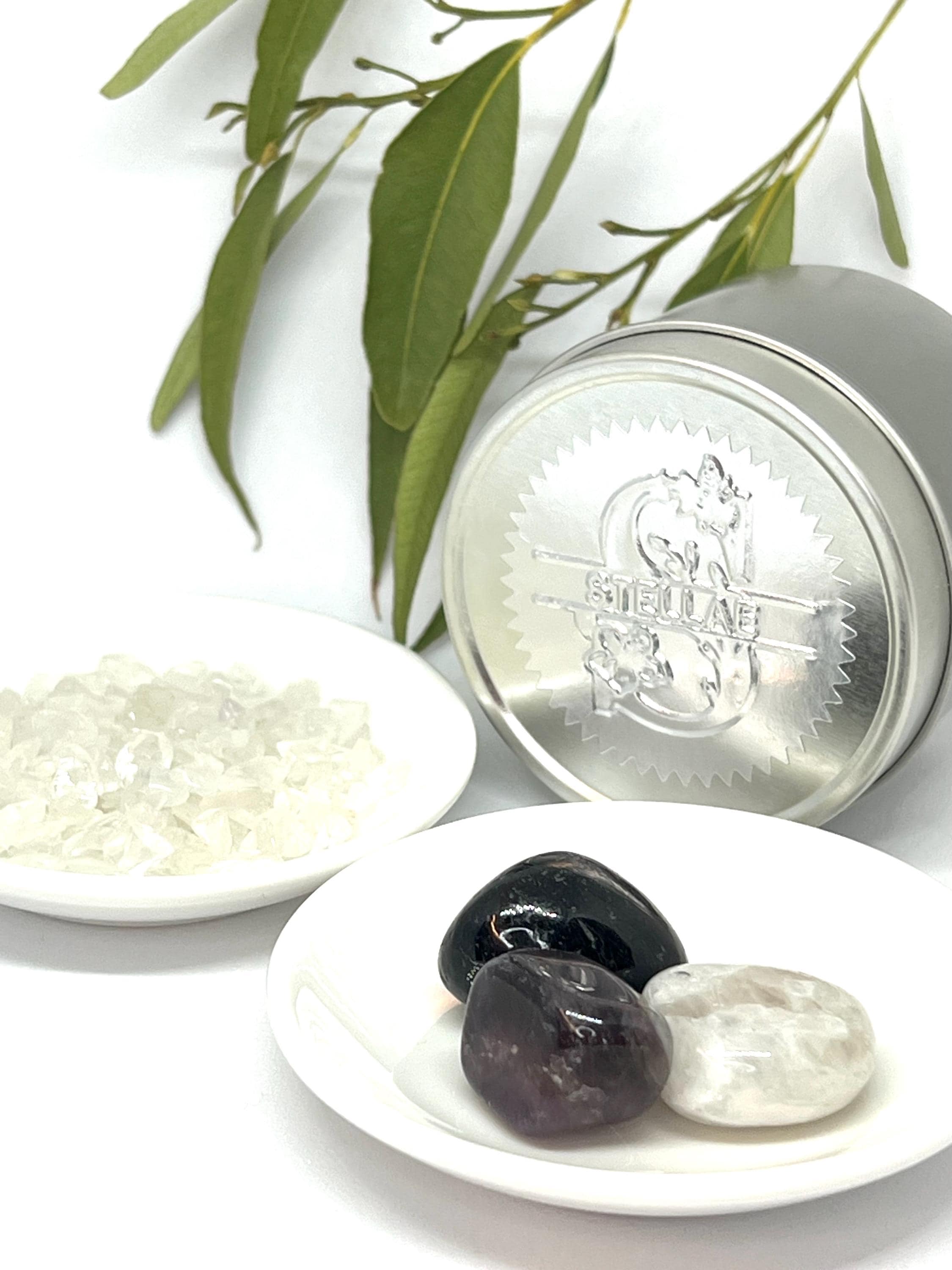 ∙ Amethyst — Emotional purification and stillness. Invites you to soften, breathe, and come home to yourself.