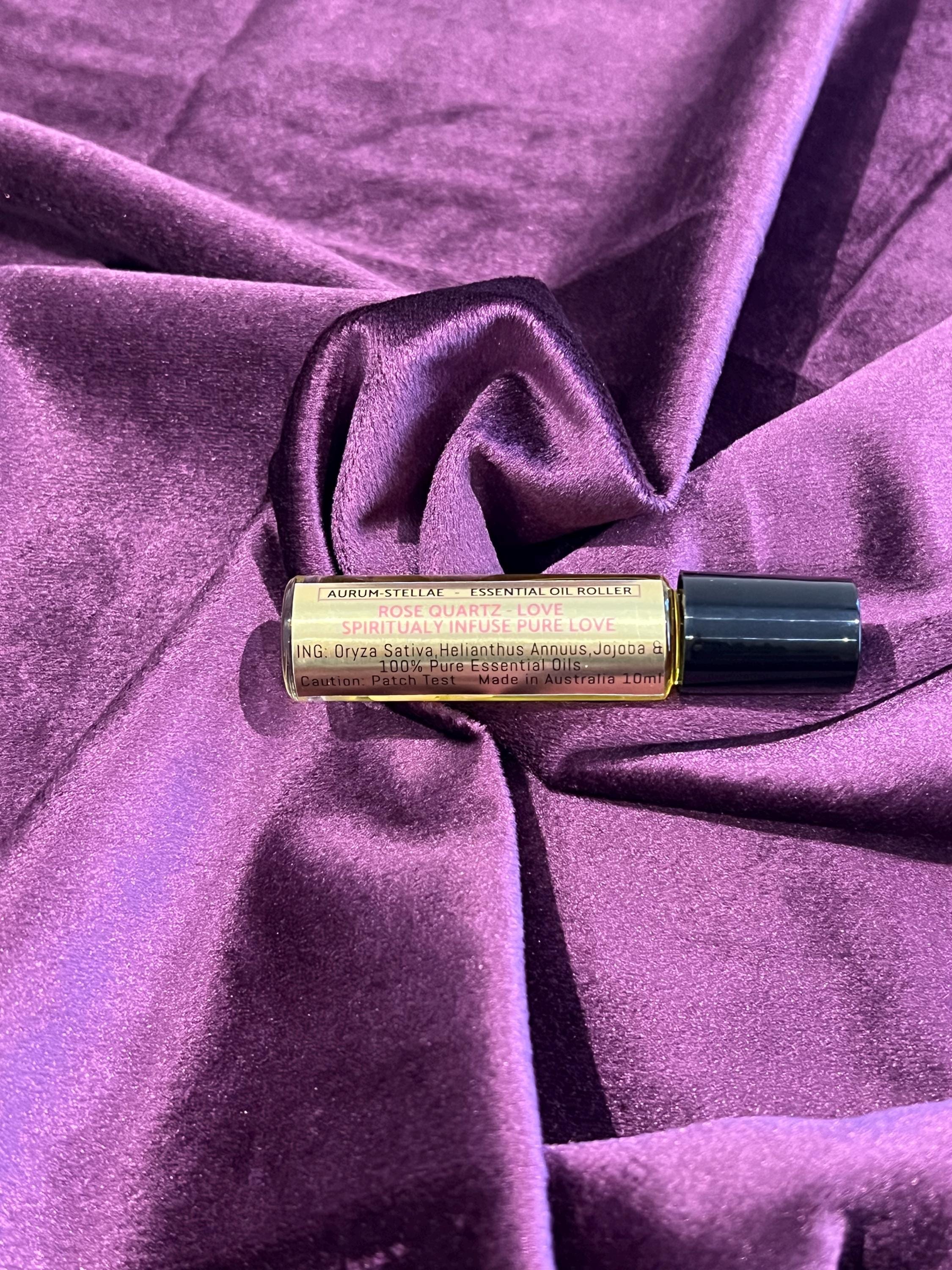 A beautifully crafted essential oil roller infused with the soft, feminine energy often associated with Rose Quartz.